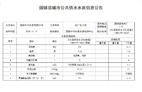 2024年11月11日出厂水水质(8项)