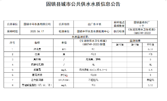 2025年06月17日出厂水水质(8项)