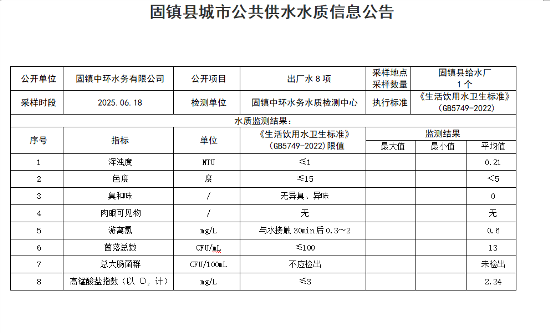 2025年06月18日出厂水水质(8项)
