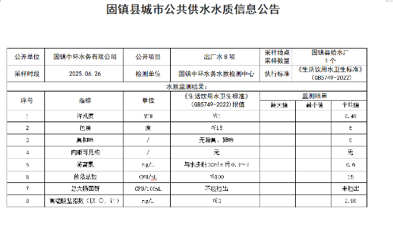 2025年06月26日出厂水水质(8项)