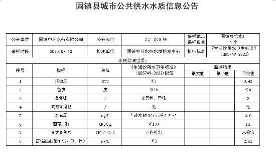 2025年07月10日出厂水水质(8项)