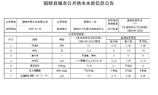2025年03月下半月管网水水质(7项)