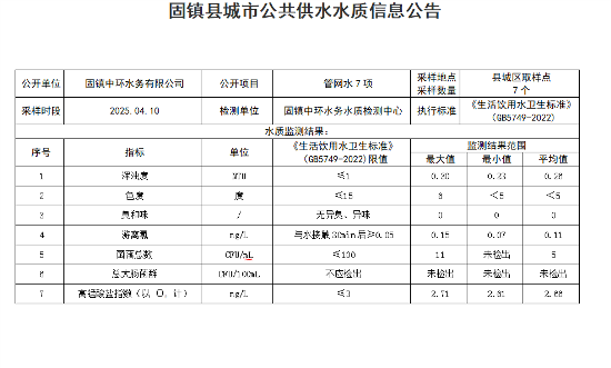 2025年04月上半月管网水水质(7项)